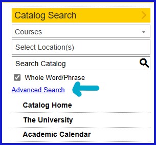 The following are methods for locating specific programs, courses, colleges, departments, etc., within the online catalog: