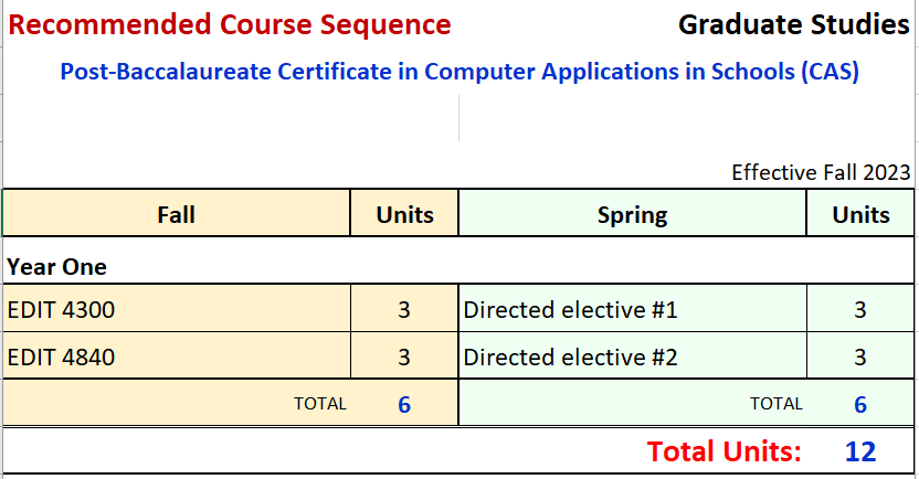 Post-Baccalaureate Certificate in Computer Applications in Schools (CAS)
