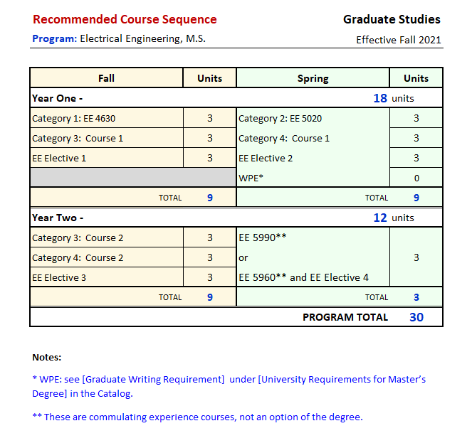A total of 30 units are required, with at least 18 units in 5000-level courses. A thesis or comprehensive examination is required. Core Courses in Electrical Engineering (18 units)
