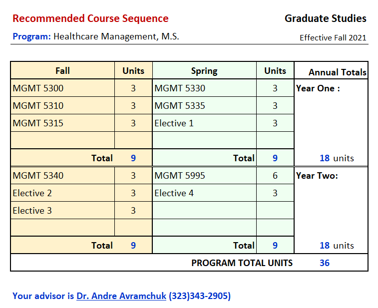 A total of 36 units is required, with at least 30 units in 5000-level courses. Students must fulfill all University requirements for graduation. Electives (12 units)