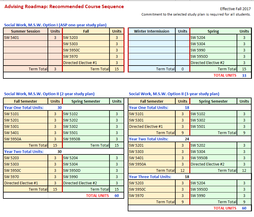 The MSW program offers a 2-year or a 3-year option and a 1-year advanced option. The 2-year or 3-year options can be completed at the main Cal State L.A. campus and the 1-Year program at the downtown Cal State LA (DTLA) campus.